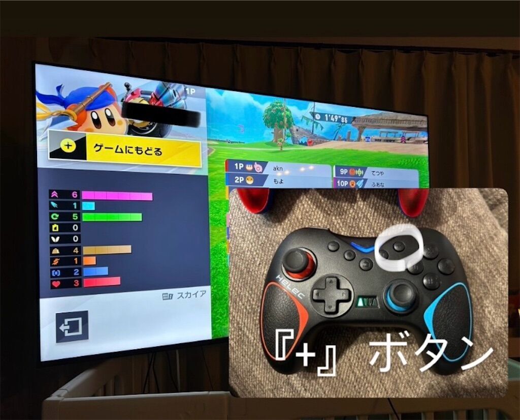 ・ローカル2人プレイの画面分割では、どちらかが+を押すと2人ともプレイが止まります。オンラインと挙動が違う点には注意が必要です。